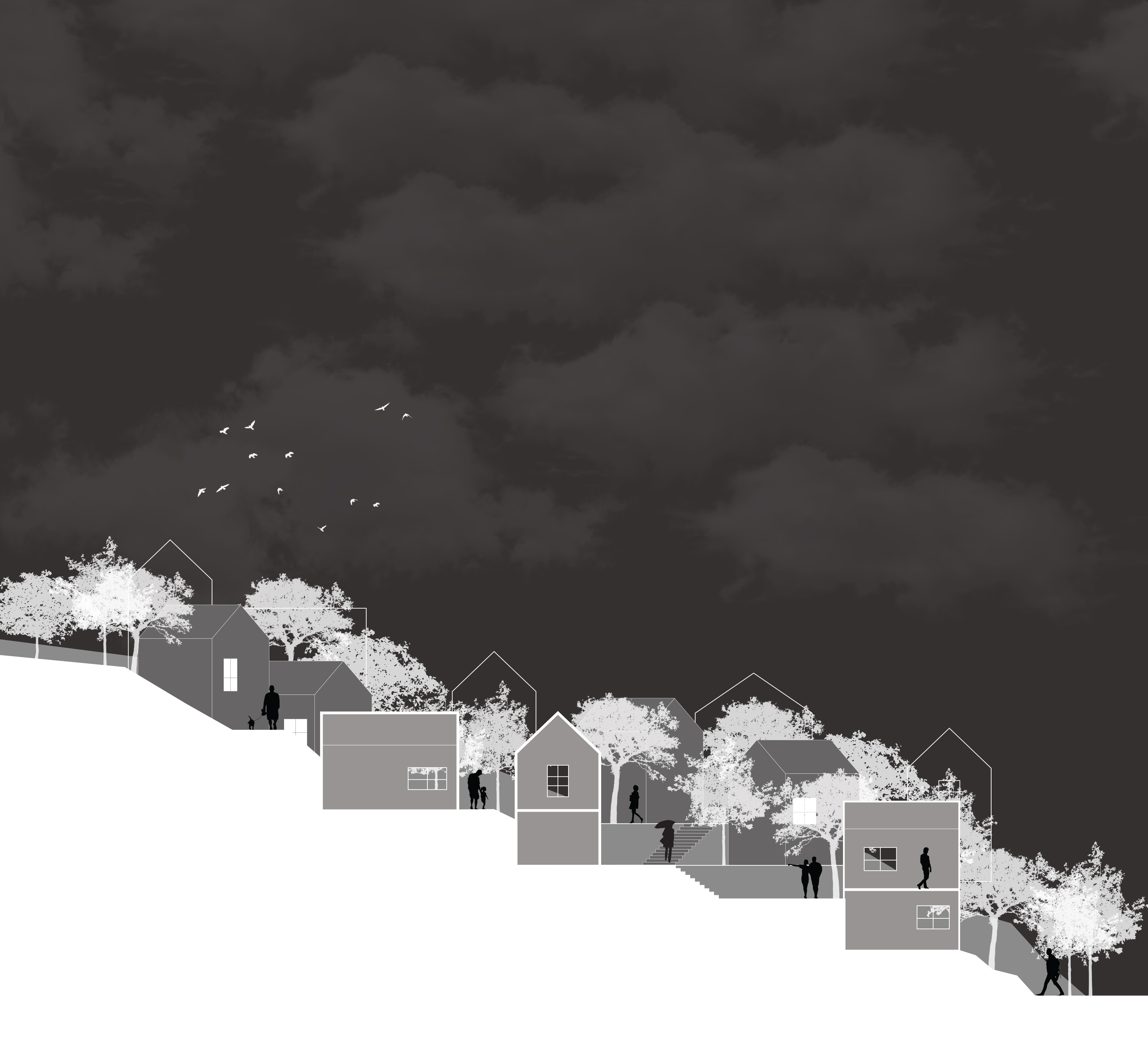 The project is a master plan of a new typology for urban communities surrounding the dense city of Taipei. The site is located on the existing community of Toad Mountain, and follows the planning of the neighboring community of artist village Treasure Hill. The master plan includes various types of gardens that function as a network within the community. The different community gardens include animal and plant farming, native plant for restoration and water ponds for rain collection. The gardens also allow the community to be self-sustained and self-sufficient. The master plan also includes a study of stilts housing in response to the topographical features of the site. A culinary school with different mixed used spaces is proposed as a community center, where the community is able to learn different cooking techniques with locally grown ingredients form the different gardens.